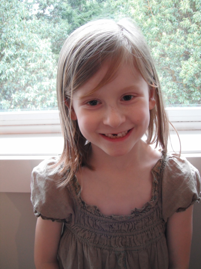 After weeks and weeks..... and weeks - I finally lost my tooth! It was so wiggly and it hung there all crooked, I looked a little like Nanny McPhee. Mom tried to pull it out twice for me. She pulled with all her might, but it just would not come out. It fell out this morning all by itself while I was brushing my teeth! I can't wait to go to sleep so that the Tooth Fairy can come!